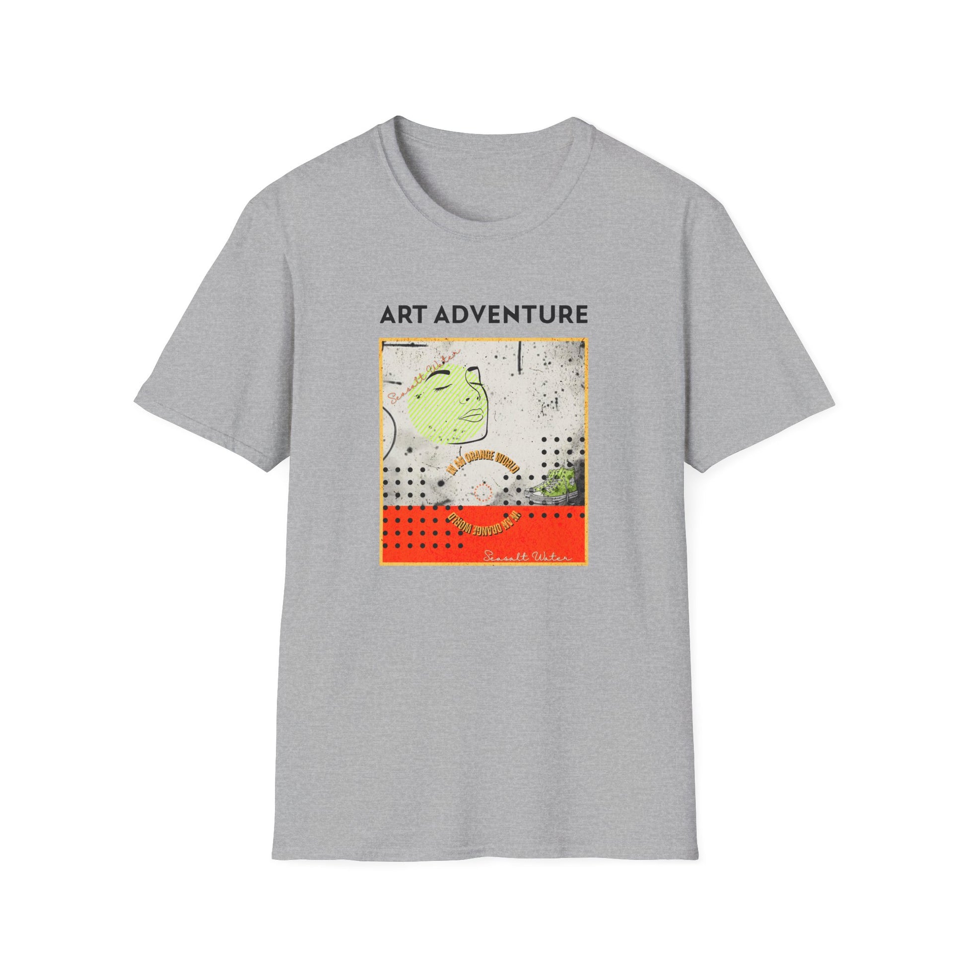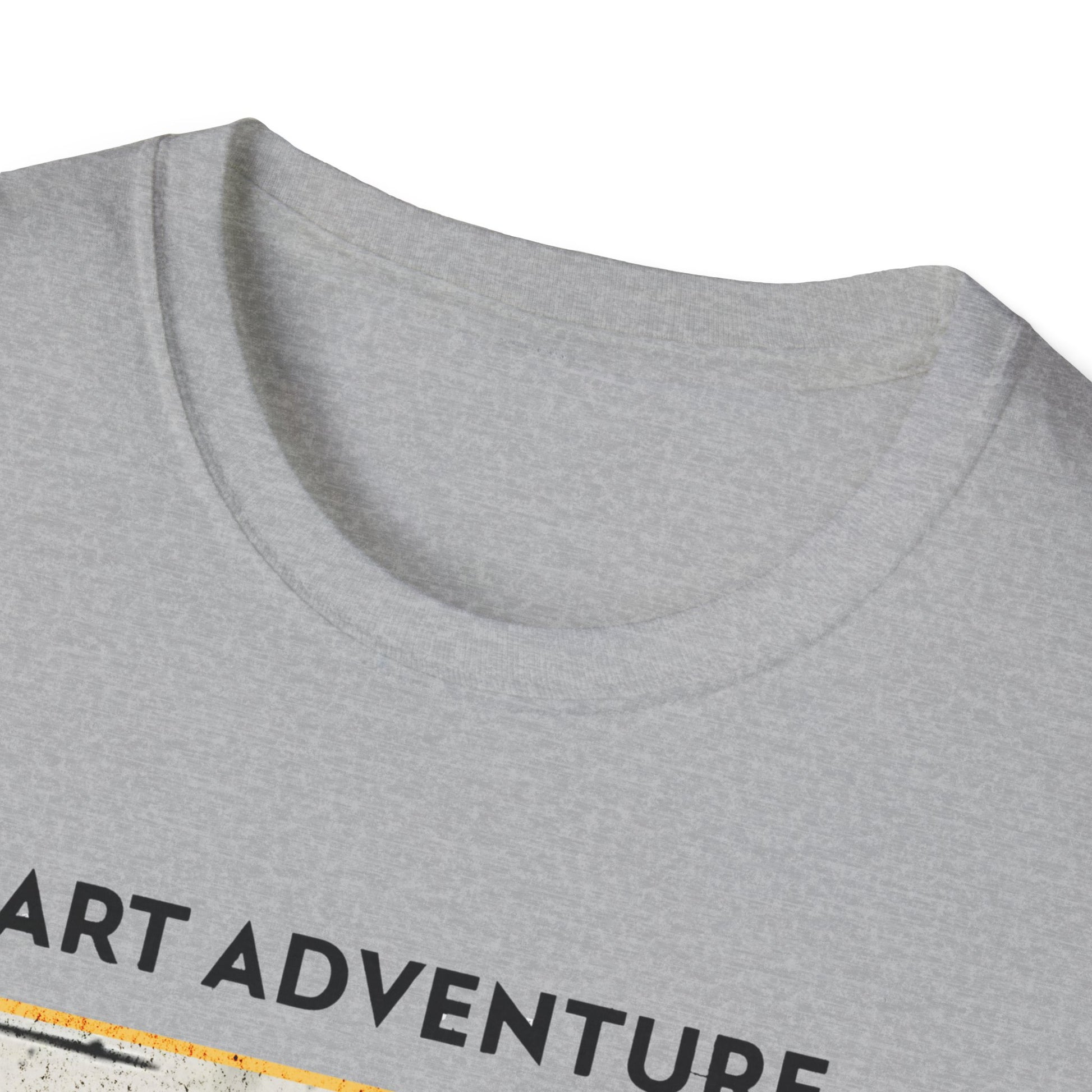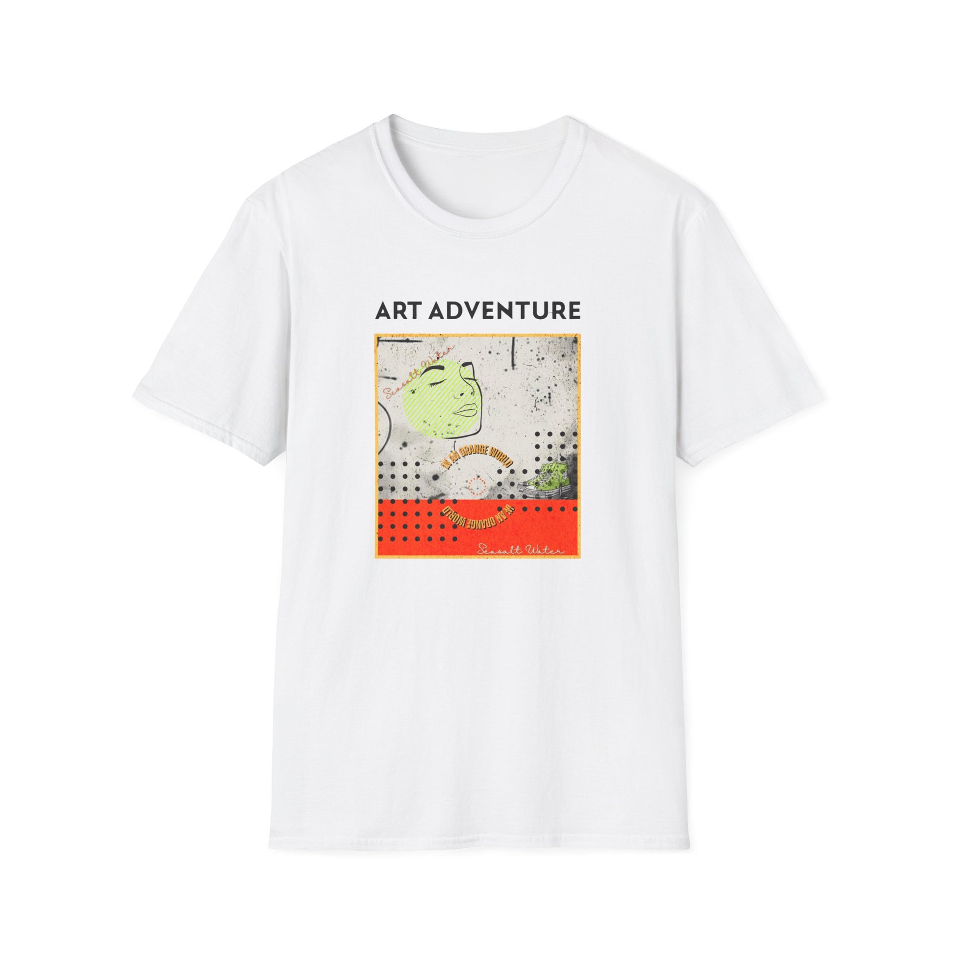 Wear a small, wearable gallery that sparks curiosity and conversation. This lightweight tee carries a mixed-media print—muted pastels, ink-mark textures, and a bold band of coral—framed under the title “ART ADVENTURE.” It feels casual and thoughtful: the fabric drapes softly, the crew neck sits cleanly, and the print reads like a snapshot from a sketchbook. Put it on for museum days, studio visits, or slow city walks. It pairs with worn denim, a tote full of sketch supplies, and the kind of playlists you play when you want to notice details. The design invites people to ask where you found it; you can tell them it’s made for those who collect moments, not just things.